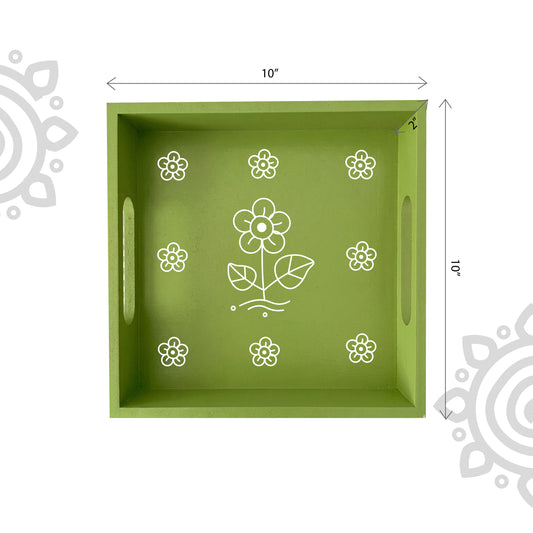 Hand Painted Multipurpose Serving Tray with Handle | 10"x10"x2" | Style #6