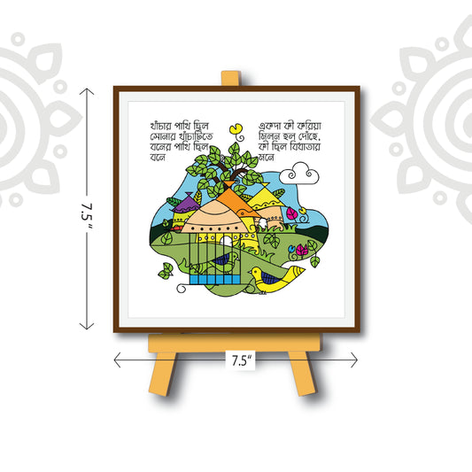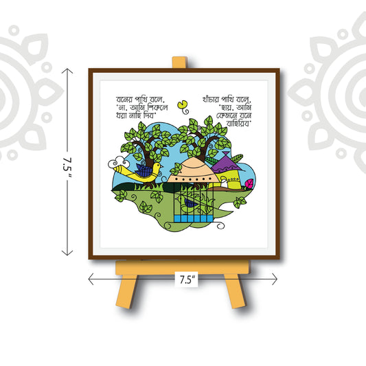 Combo Deal | Khanchar Pakhi | Style #3 | Set of 2 - Framed Art with stand & Coffee Mug
