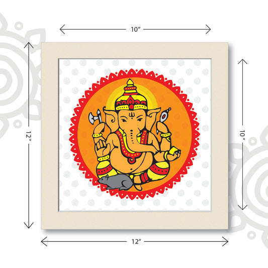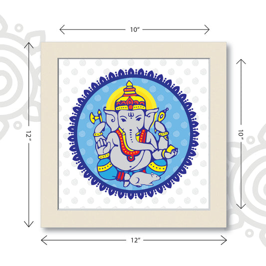 Ganapati | Ganesha | Style #1 | Colorful Wall Art for Home and Office Decoration | White | 12 Inch X 12 Inch