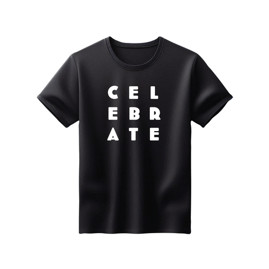 Unisex Printed 100% Cotton T-Shirt - Celebrate - Black