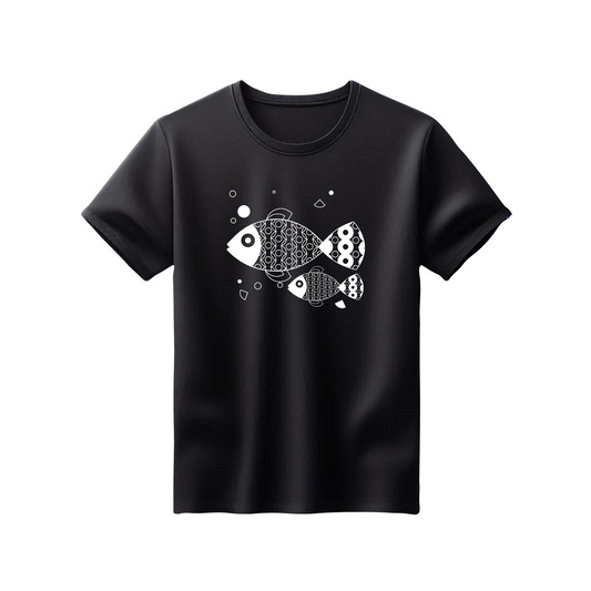 Unisex Printed 100% Cotton T-Shirt - Fish Family - Black