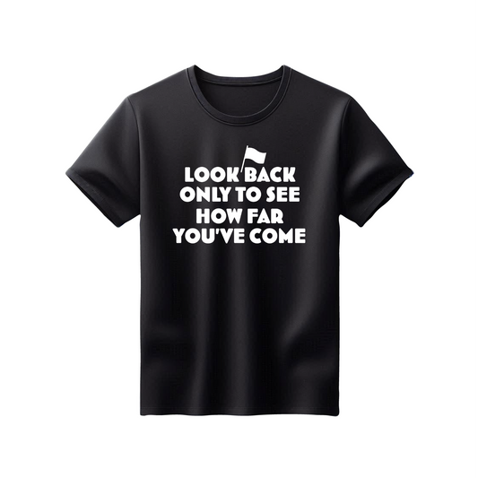 Unisex Printed 100% Cotton T-Shirt - Look back only to see how far you have come - Black