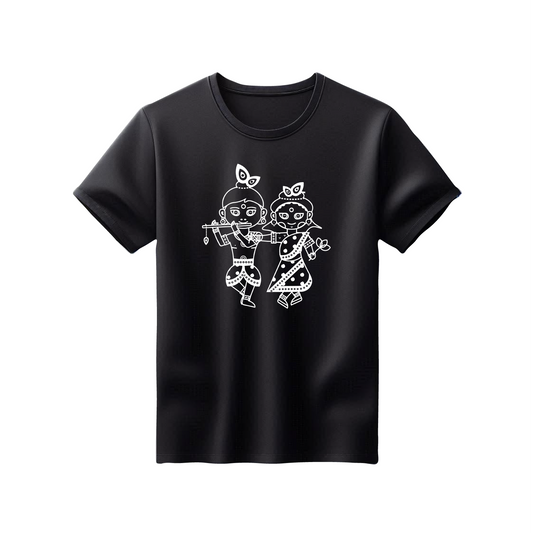 Unisex Printed 100% Cotton T-Shirt - Radhe Krishna - Black
