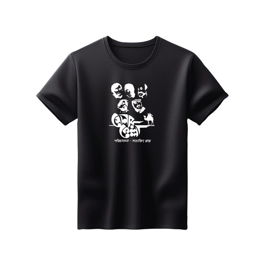 Unisex Printed 100% Cotton T-Shirt - Bengali Themed - Gupi Gayen Bagha Bayen - Black