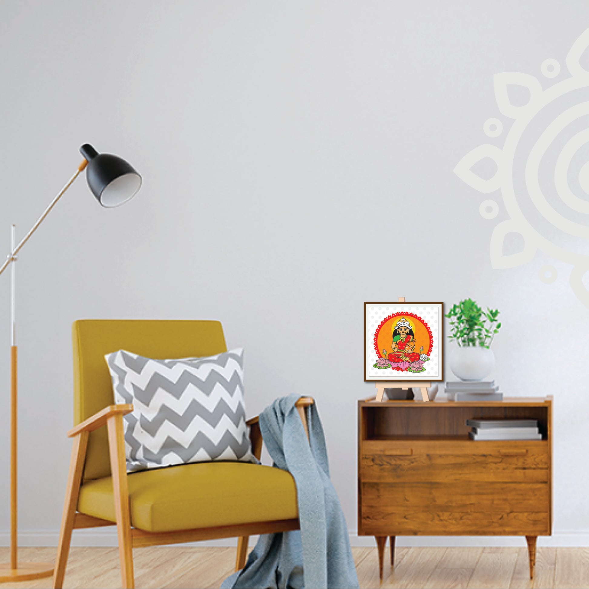 Birthday Gift | Style #2 | Boxed set of Goddess Lakshmi photo frame + Wooden Stand + Printed Coffee Mug + Sports Bottle