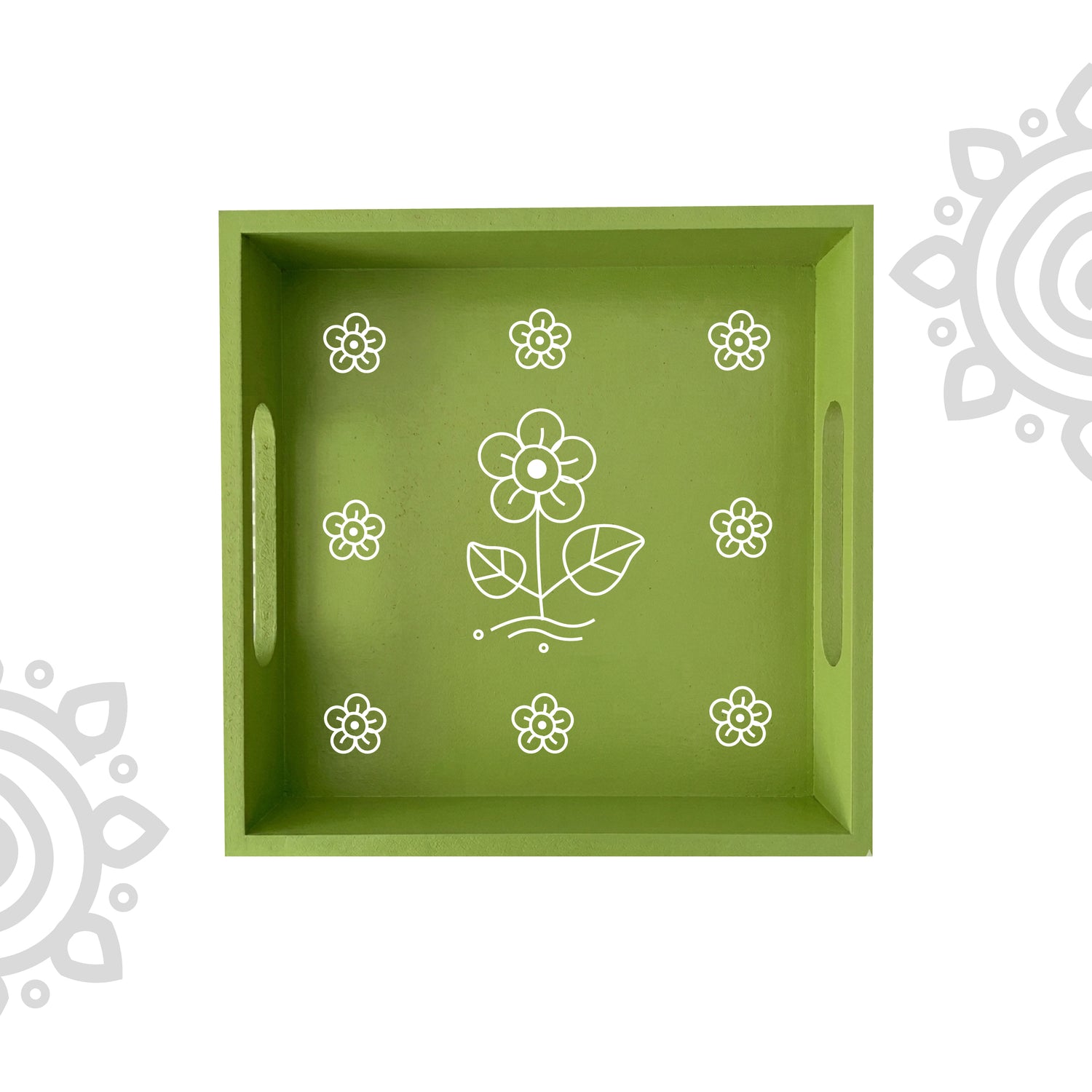 Hand Painted Multipurpose Serving Tray with Handle | 10"x10"x2" | Style #7