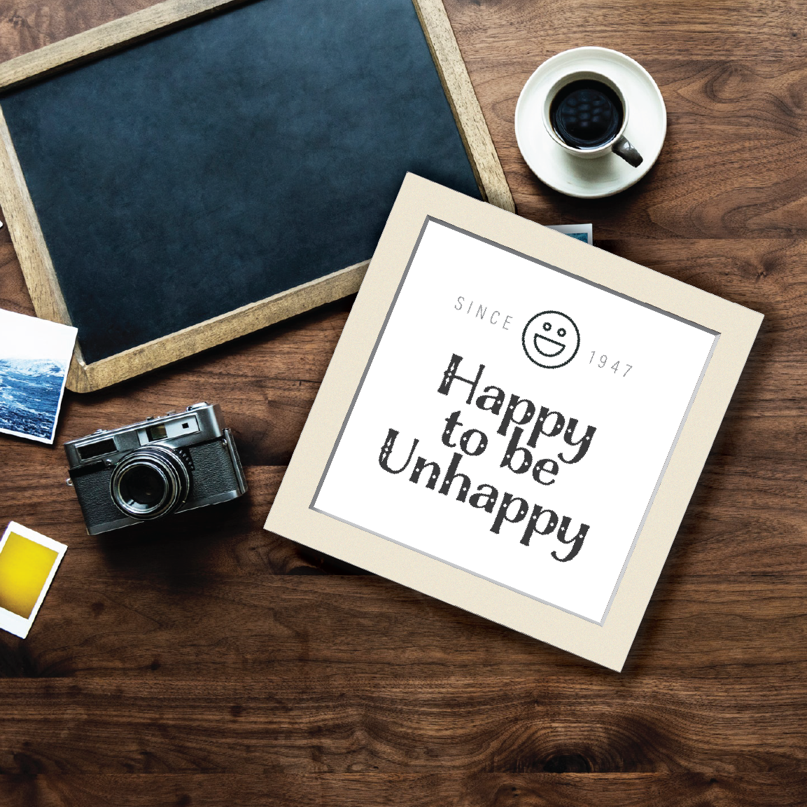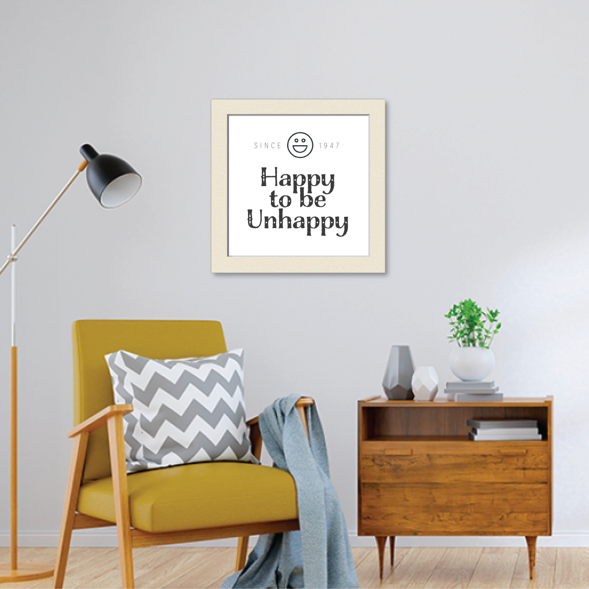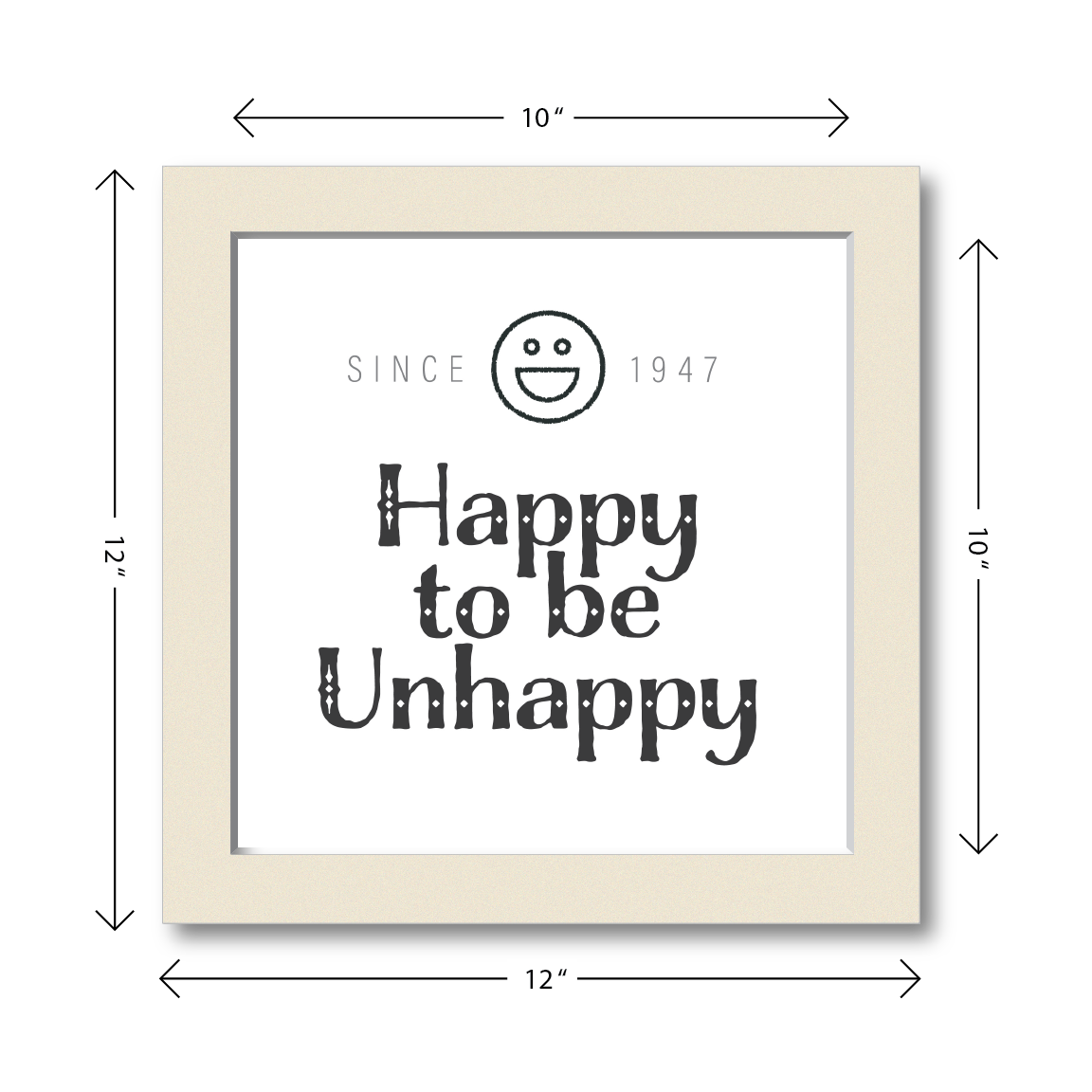 Happy to be Unhappy | Black & White Wall Art for Home and Office Decoration | White | 10 Inch X 10 Inch