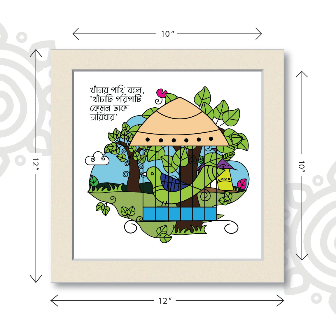 These elegant piece of framed art is based on the bengali song "Khanchar Pakhi" written & composed by Rabindranath Tagore. Rabindranath is a inseparable personality in the arena of Bengali art & culture. Even today, he and his works are contemporary and contributes a lot in enriching Bengali culture.