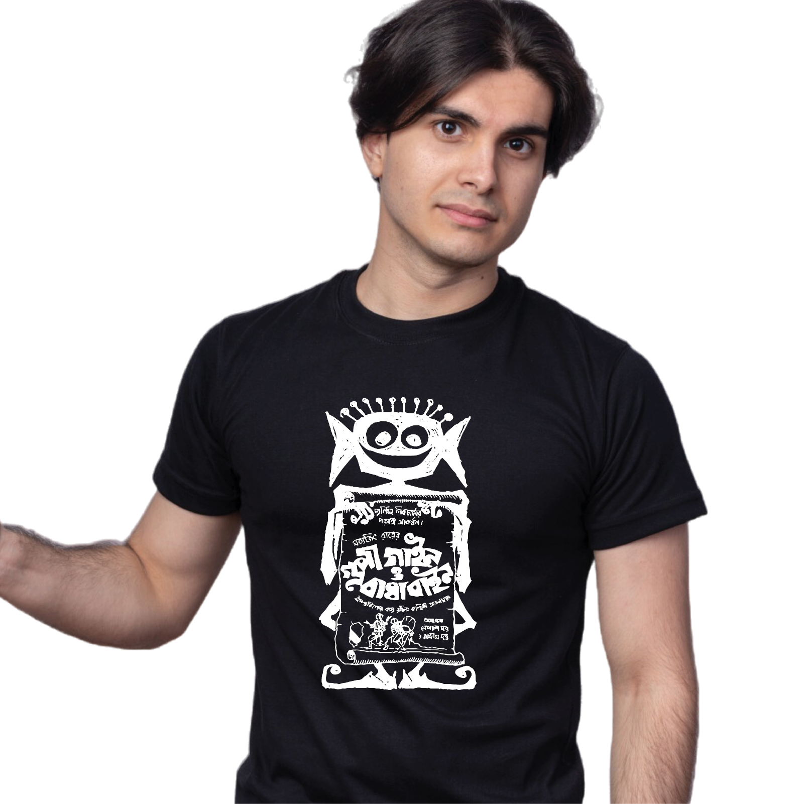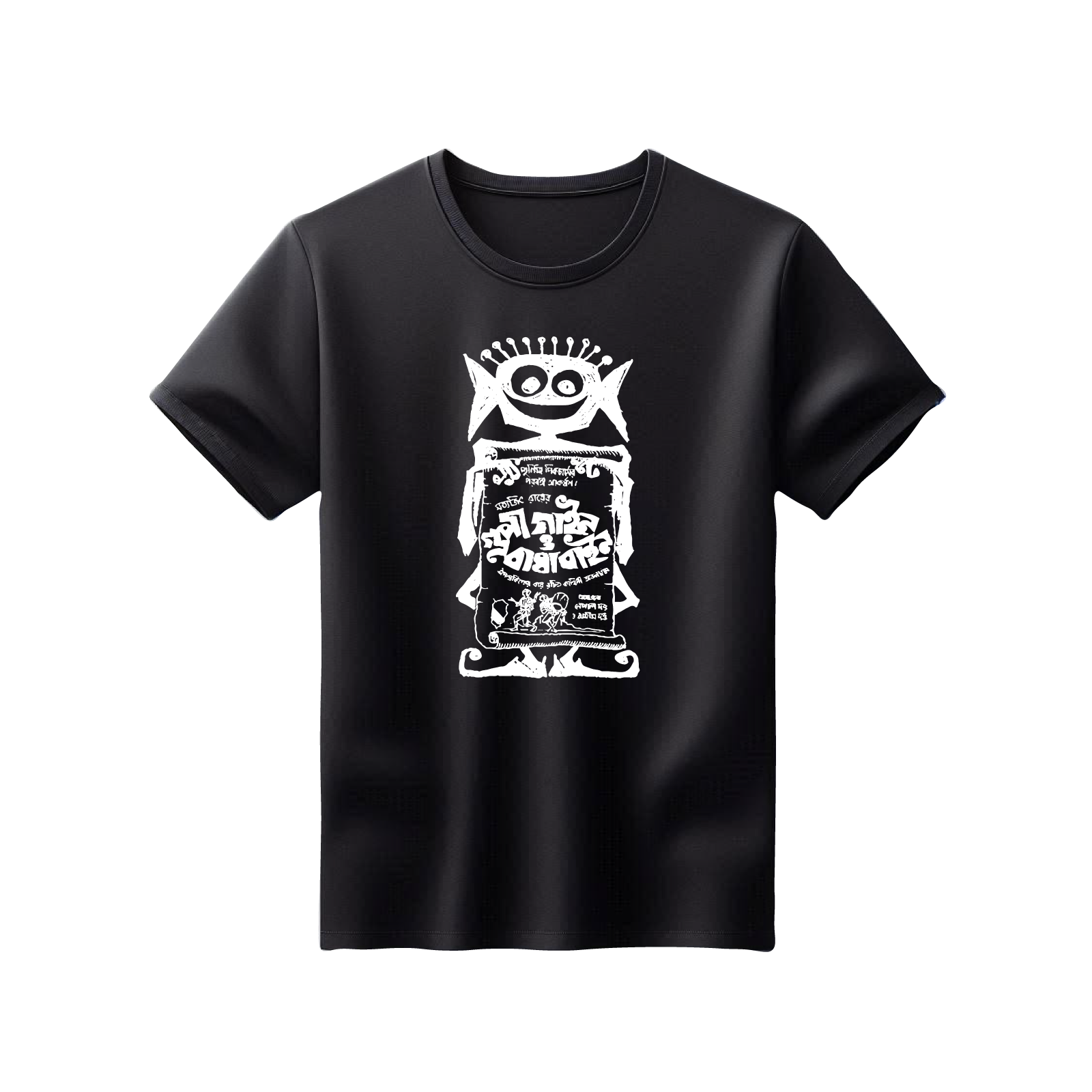 Unisex Printed 100% Cotton T-Shirt - Bengali Themed - Gupi Gayen Bagha Bayen - Black