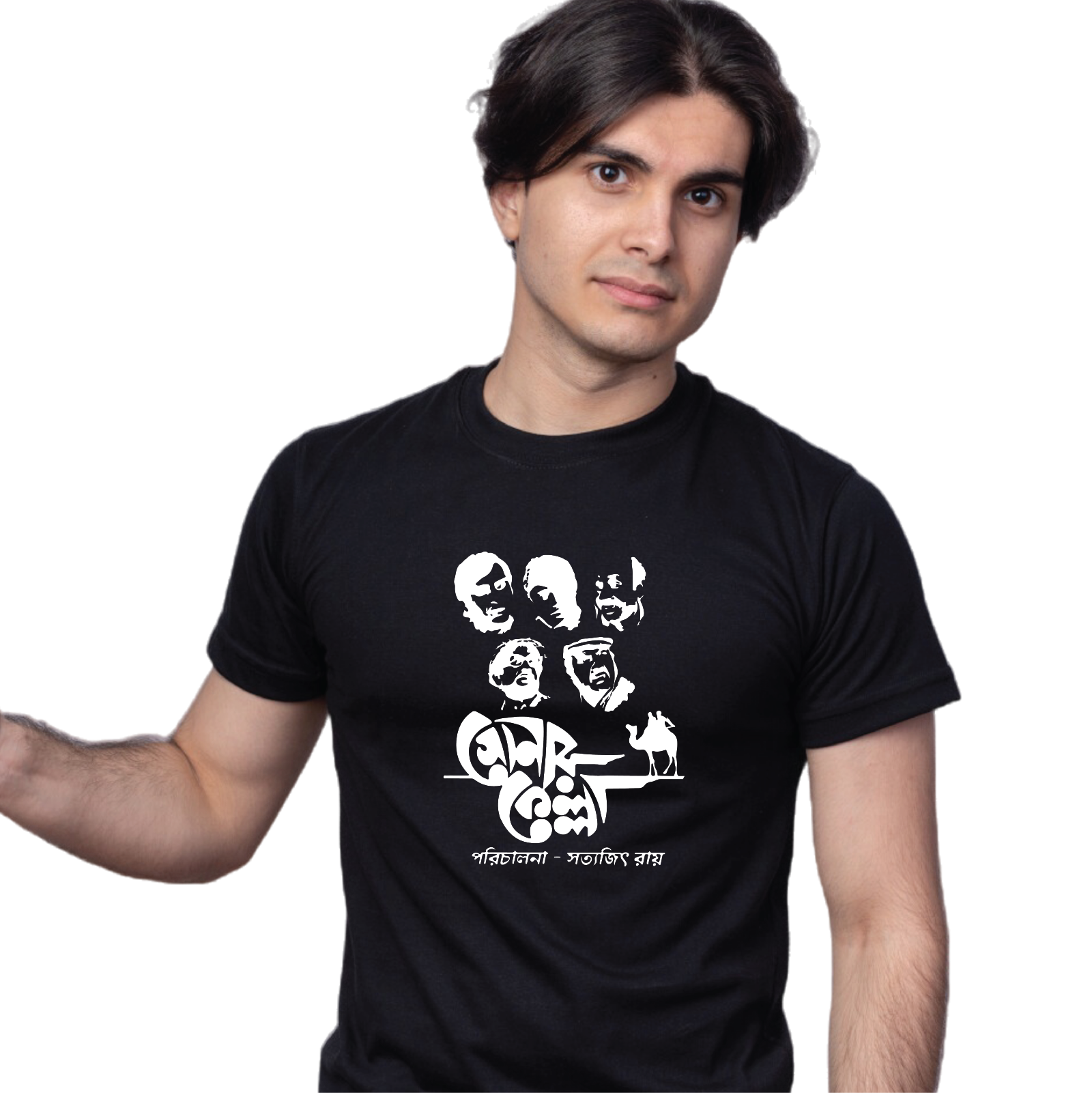 Unisex Printed 100% Cotton T-Shirt - Bengali Themed - Shonar Kella - Black