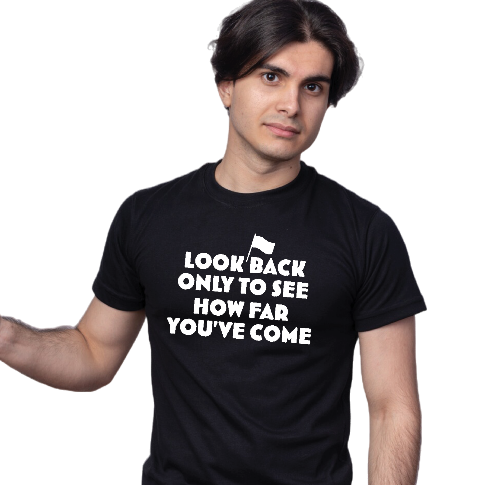 Printed 100% Cotton T-Shirt - Look back only to see how far you have come