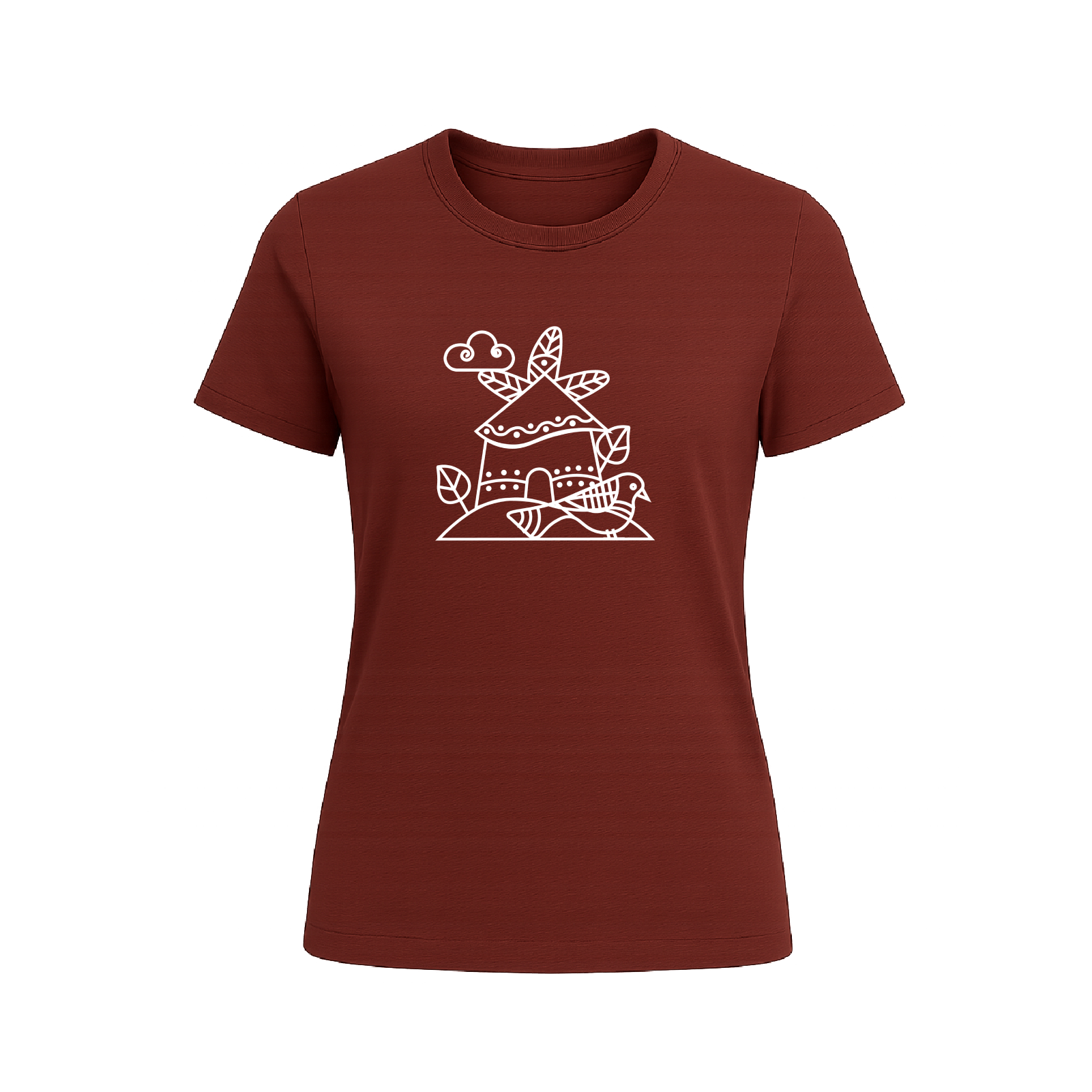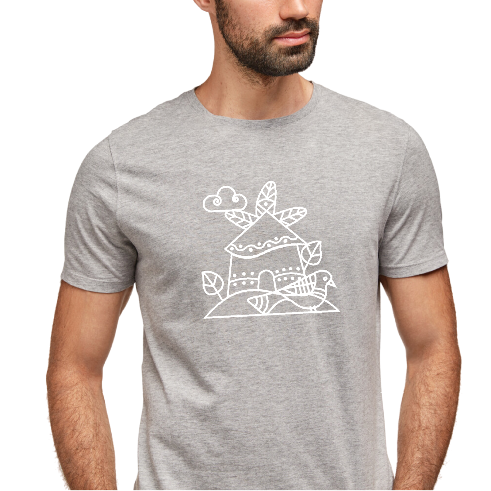 Alpana or alpona is a Bengali folk art style consisting of colored motifs, patterns, and symbols that are painted on floors and walls with paints made from rice flour, on religious occasions. Alpana motifs have been very influential in modern Indian art, and are incorporated into the works of artists such as Jamini Roy, Abanindranath Tagore, Devi Prasad, and in the early illustrations of film-maker Satyajit Ray. Now catch good vibes with this folk art being depicted on 100% cotton unisex T-Shirts.