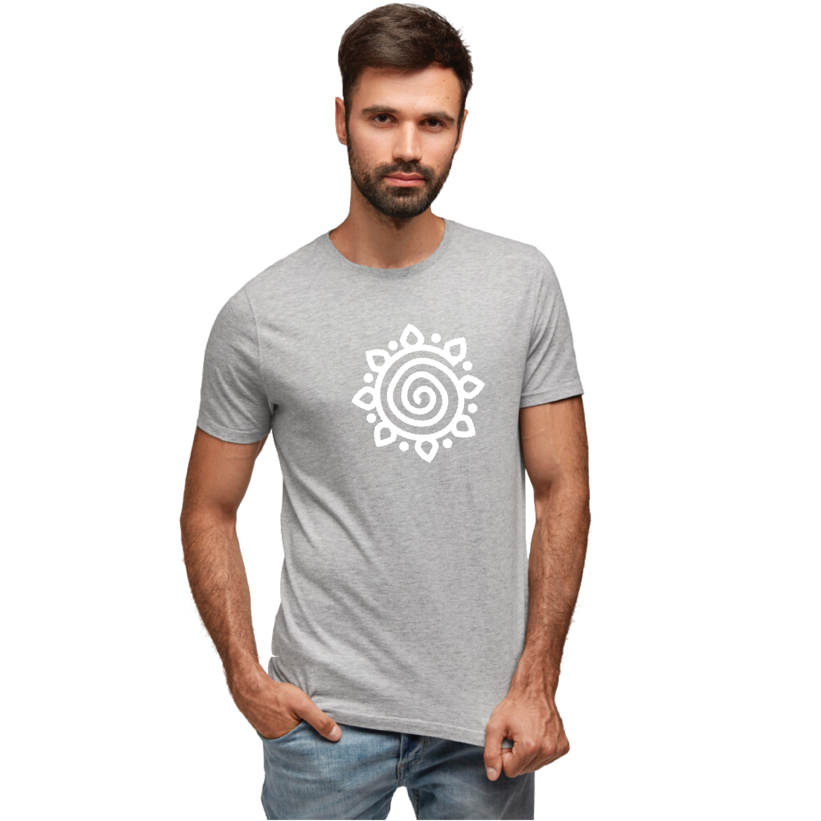 Alpana or alpona is a Bengali folk art style consisting of colored motifs, patterns, and symbols that are painted on floors and walls with paints made from rice flour, on religious occasions. Alpana motifs have been very influential in modern Indian art, and are incorporated into the works of artists such as Jamini Roy, Abanindranath Tagore, Devi Prasad, and in the early illustrations of film-maker Satyajit Ray. Now catch good vibes with this folk art being depicted on 100% cotton unisex T-Shirts.