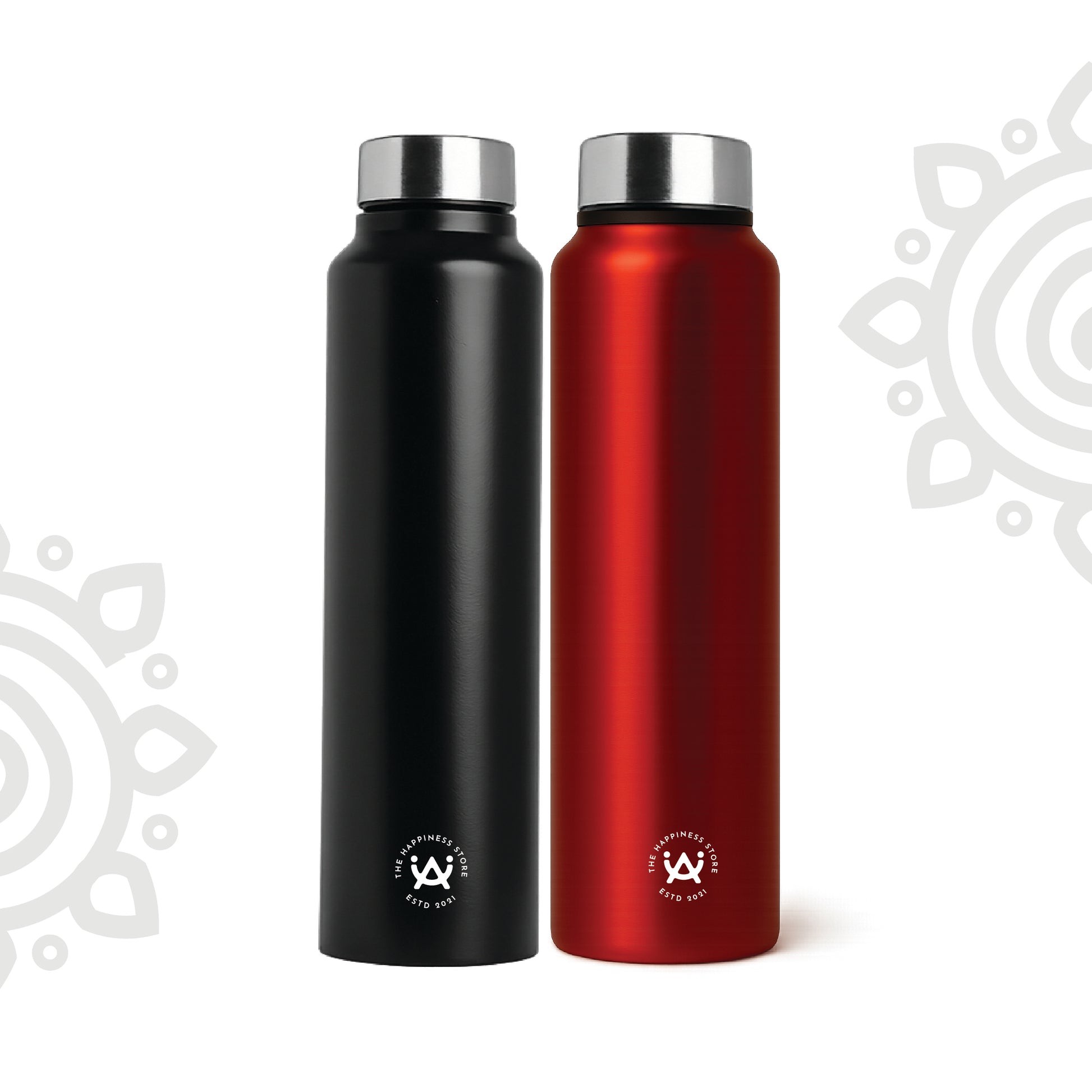 Shanti Neer | Plain Stainless Steel Water Bottle | 1000 ML | Set of 2 | Black & Red
