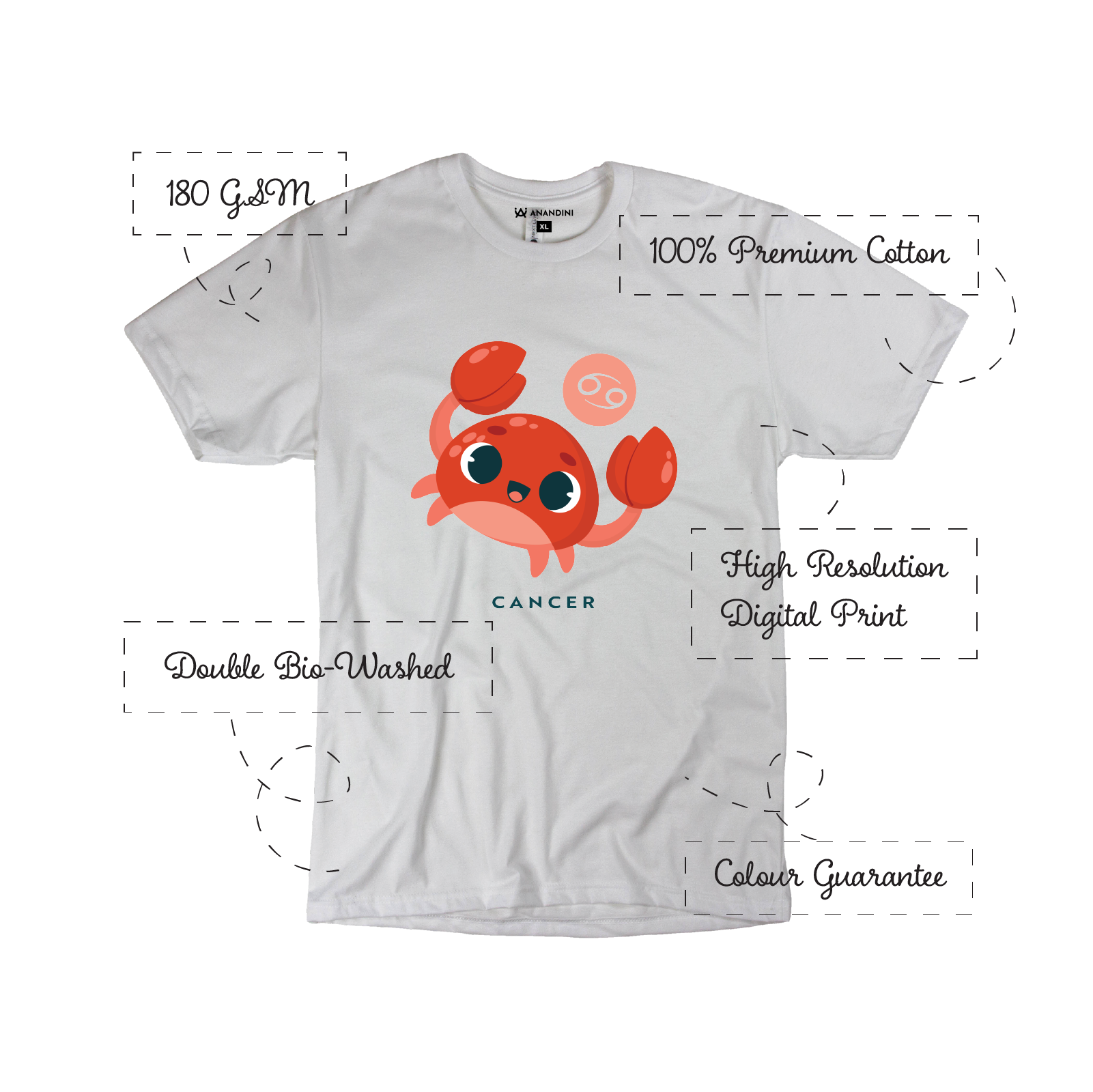 Zodiac Sign - Cancer - Printed 100% Cotton T-Shirt - Unisex